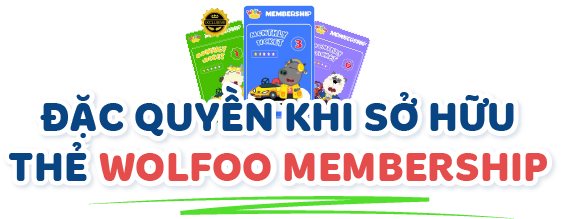 Thẻ Wolfoo Membership áp dụng cho 01 gia đình gồm bố mẹ và bé, chi tiết quyền lợi được tư vấn cụ thể khi đăng ký.